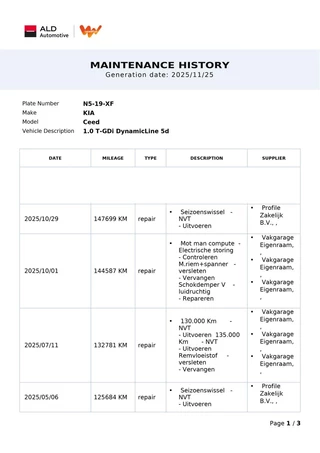 Onderhoud, historie en staat