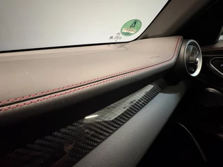 Carbon & leather trim on dashboard, carbon fiber trim on doors, carbon fiber trim on center console and leather trim on top of gear shift