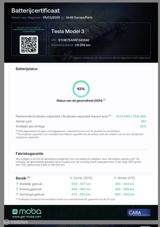 TypeLong Range RWD 75 kWh | Trekhaak | Autopilot | 131k km | Michelin | SOH 83